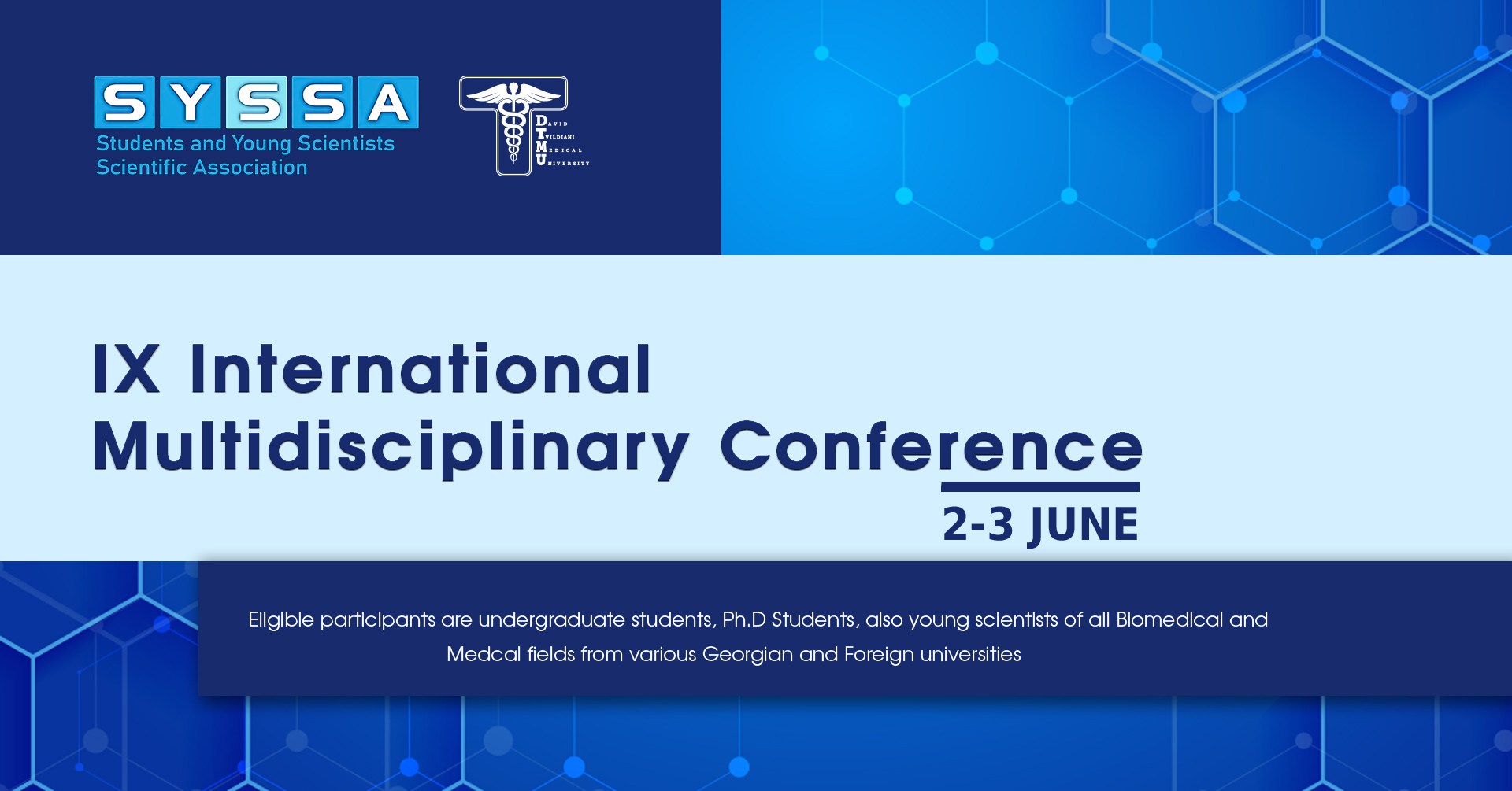 Participation will be open to undergraduate and doctoral (PhD) students, as well as young researchers from all biomedical and health science fields from Georgian as well as foreign universities.